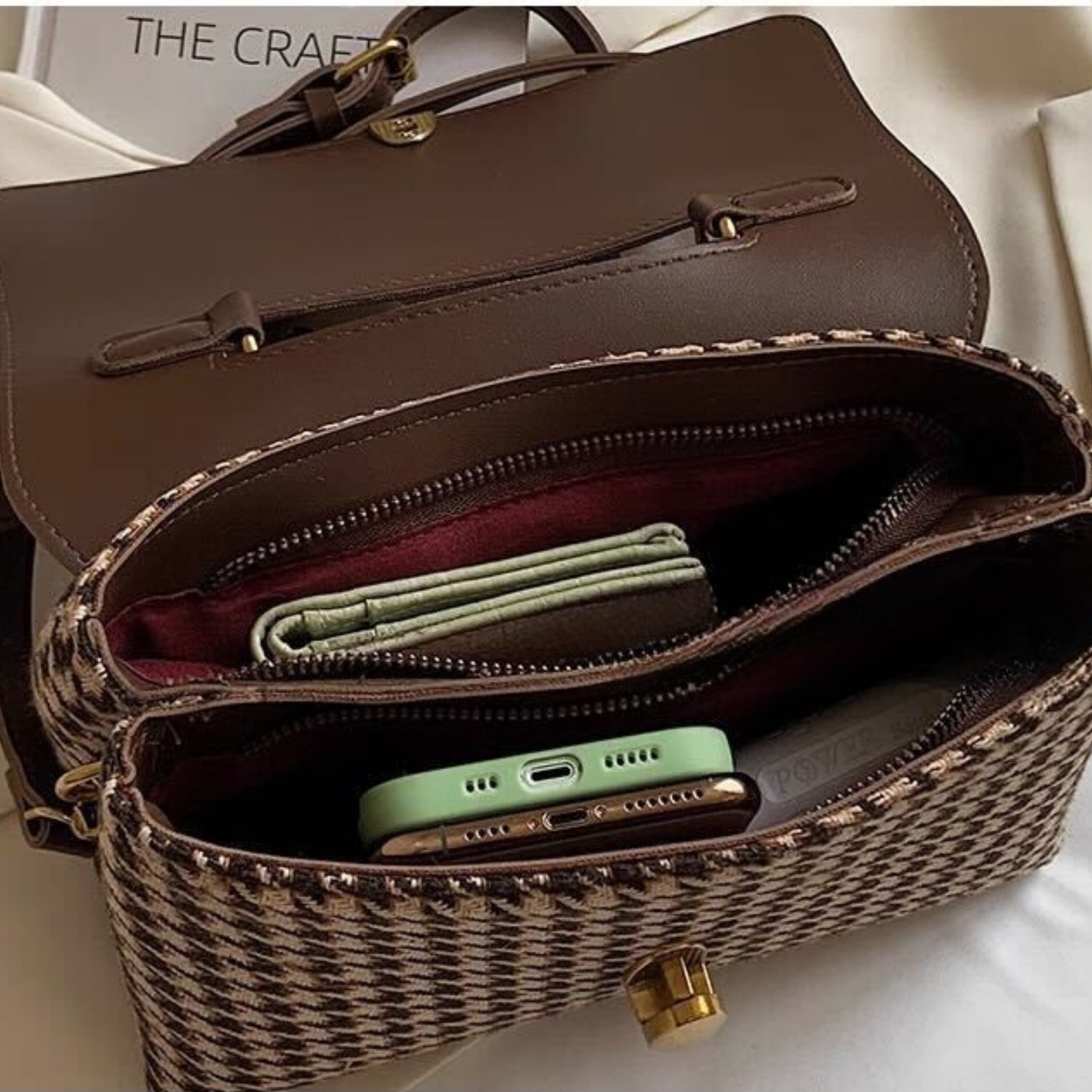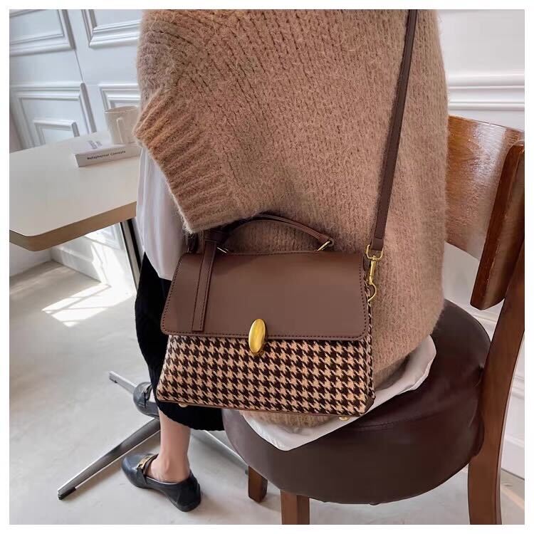 This refined, small cross-shoulder handbag from USS Bag Maybe is crafted with high-quality polyurethane and lined with soft polyester for both durability and elegance. Its flap shape, with a hasp clasp, ensures a secure closure, while the decorative chains add a touch of sophistication. Designed for versatility, it features a practical cell phone pocket inside and a single handle for comfortable wear. Made to order to minimize waste, this handbag blends style with mindful craftsmanship, making it a polished accessory for any occasion.