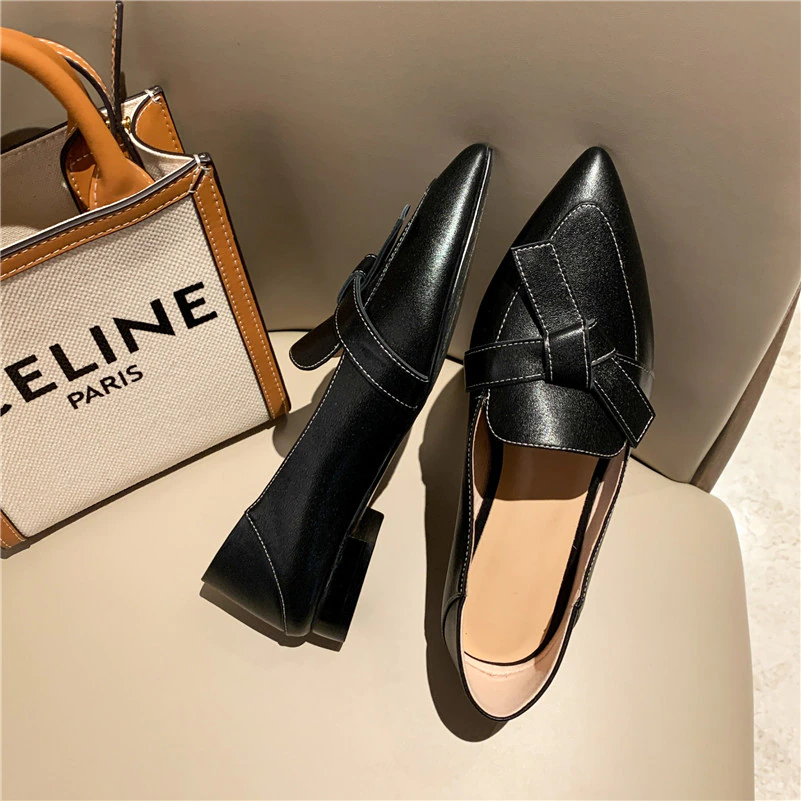 Crafted from genuine leather, the USS Shoes Amau Women's Loafer offers a refined pointed toe design enhanced with an elegant butterfly knot. This slip-on loafer features a durable TPR sole and a modest 1.5 cm heel, ensuring comfortable all-day wear during spring and autumn. With a true-to-size fit in medium width, it balances style and practicality while weighing only 6 oz. Made to order to reduce waste, these high-quality loafers combine expert craftsmanship with sustainable production, available for worldwide shipping.