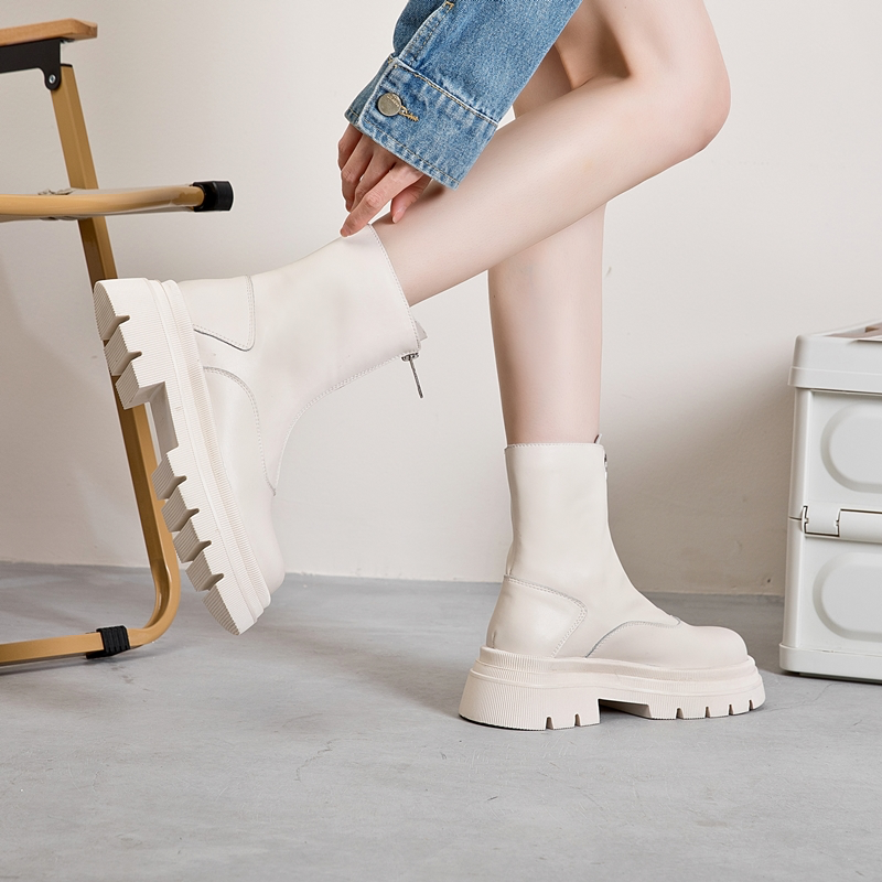 Step out in style with the USS Shoes Pierina Women's British Style Front Zipper Boots. These comfortable and stylish boots feature a high-quality split leather upper and shaft, EVA outsole, plush lining and insole, and ankle boot height for a timeless and classic look. The front zipper and square heel provide both convenience and fashion, while the round toe adds a modern touch. Buy them in black or beige and enjoy them all season long.