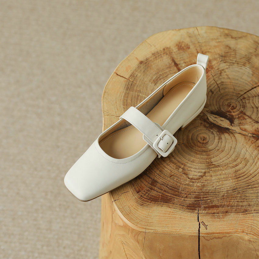 The Zoe Women's Flat by USS Shoes features a fashionable square button, genuine leather-type cow leather, square toe, and square heel design. Crafted with a microfiber lining and a Buckle Strap closure, these pumps are designed with comfort and style in mind. The outsole is made of cow muscle, while the insole is crafted with sheepskin. Fits true to size.