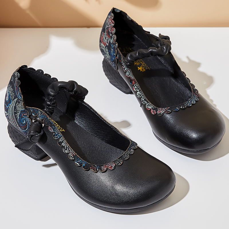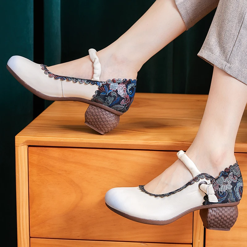 Elevate your style with the USS Shoes Lina Women's Spring Flower Pumps. Crafted with genuine cow leather, these pumps feature a charming round toe and a mix of colors to add a touch of ethnic flair. The slip-on design and square heel provide comfort while the rubber outsole ensures durability. Perfect for the spring/autumn season, these pumps are a must-have for any fashion-forward woman.