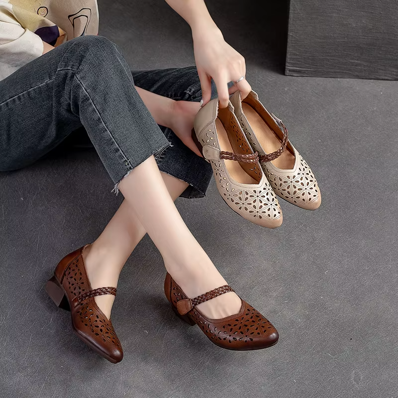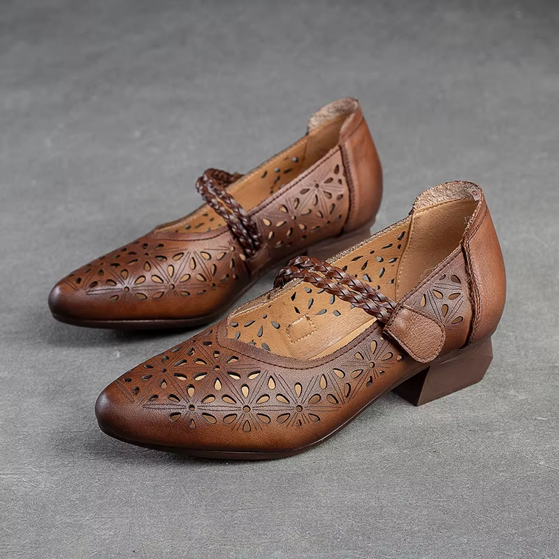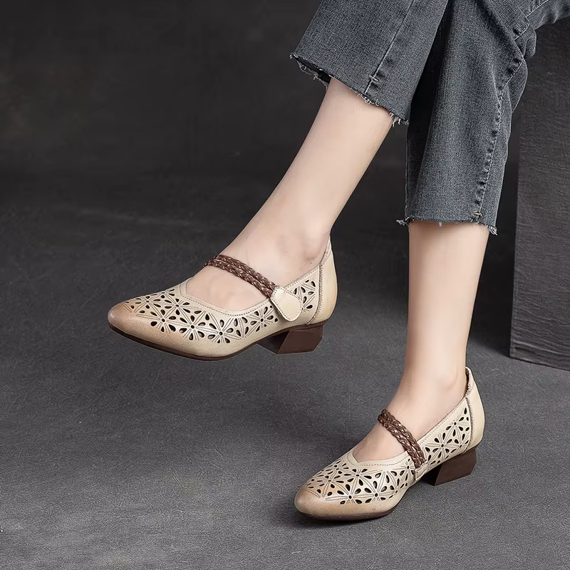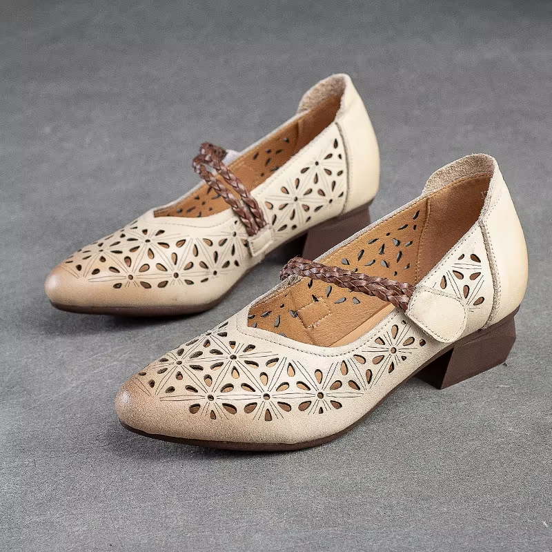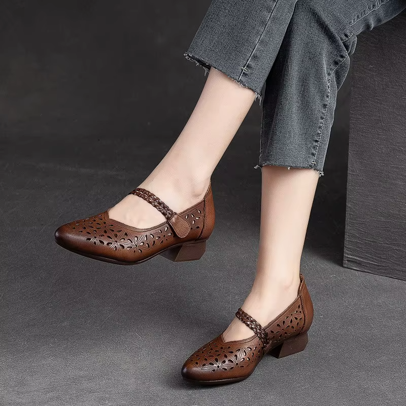 Elevate your style and comfort with our Magdalena Leather Pumps! They're made with genuine leather and pigskin lining for a luxurious feel and durability. The round toe and square heel are fashionable, while the hook-and-loop closure ensures a perfect fit. Perfect for summer and autumn, these pumps are a must-have for any fashion-forward woman.