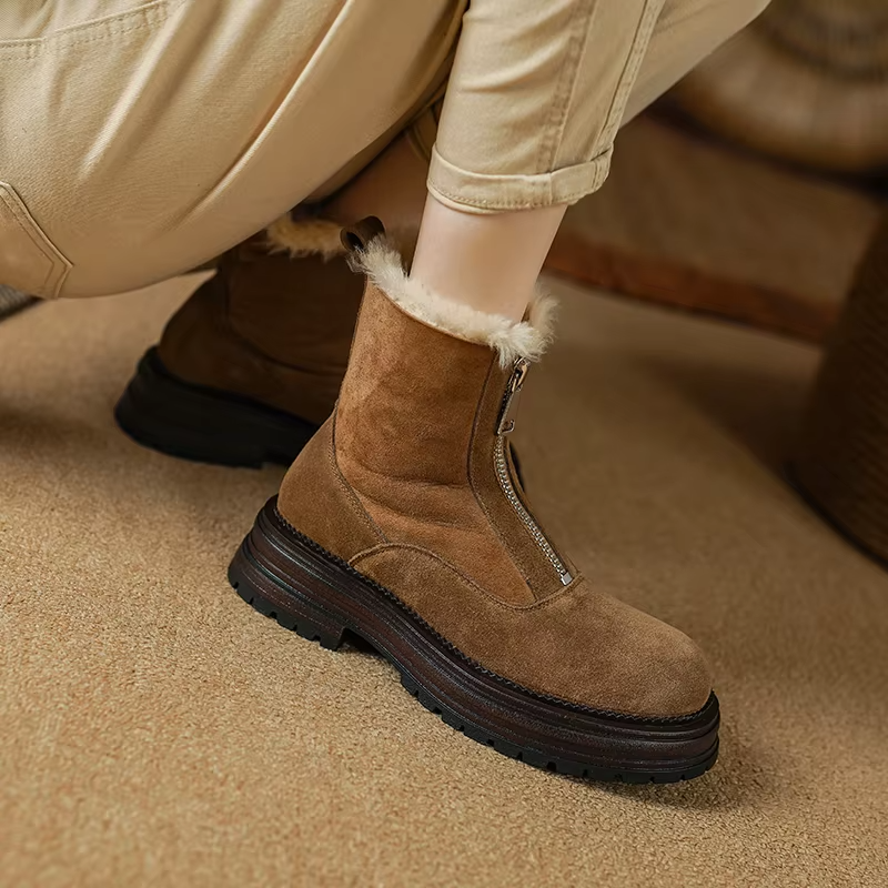 Experience warmth and style with USS Shoes Celia Women's Snow Boots! Made with split leather shaft material and wool lining and insole, these boots are perfect for the winter season. The rubber outsole and square heel offer comfort and support, while the stylish cow suede upper and zip closure add a touch of fashion to any outfit. Give your feet the best with USS Shoes Celia Women's Snow Boots.