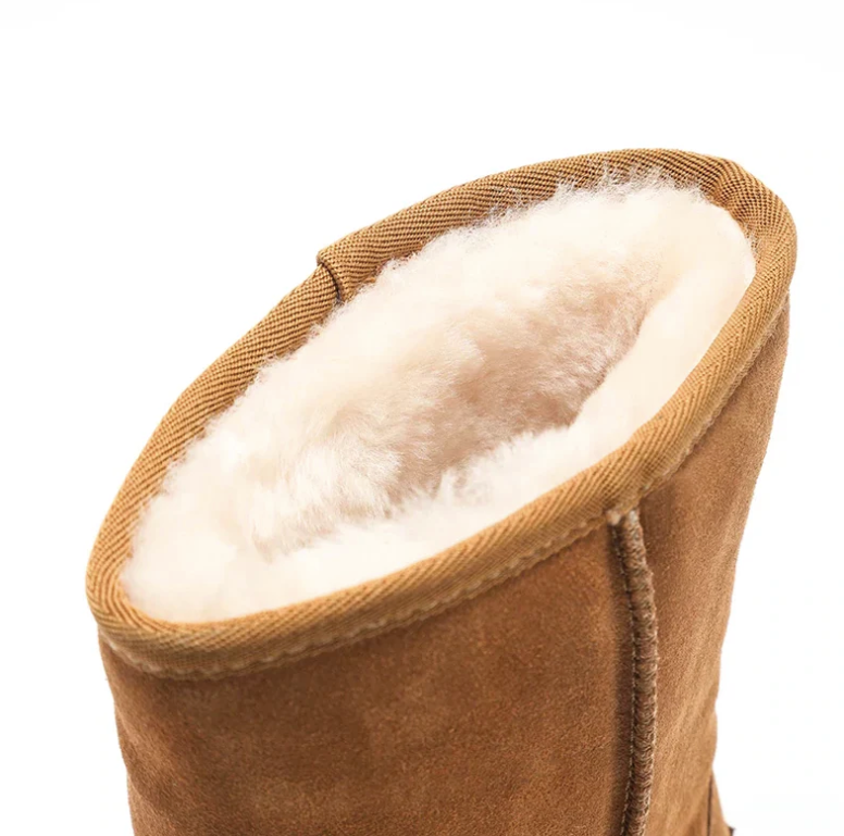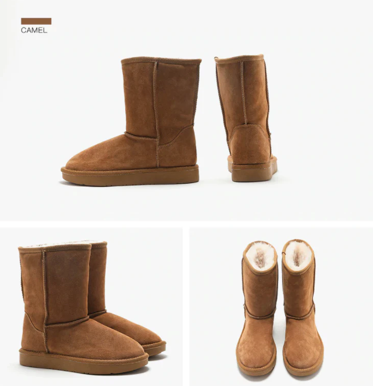 The Charito Women's Mid-Calf Boots combine rugged functionality with refined aesthetics for serious winter conditions. Built with premium cow suede uppers and insulating wool lining, these snow boots excel in harsh weather while maintaining elegant style. The mid-calf silhouette offers ankle support without excess bulk, and the true-to-size fit eliminates guesswork. Produced on demand, each pair minimizes environmental impact while ensuring meticulous attention to detail.