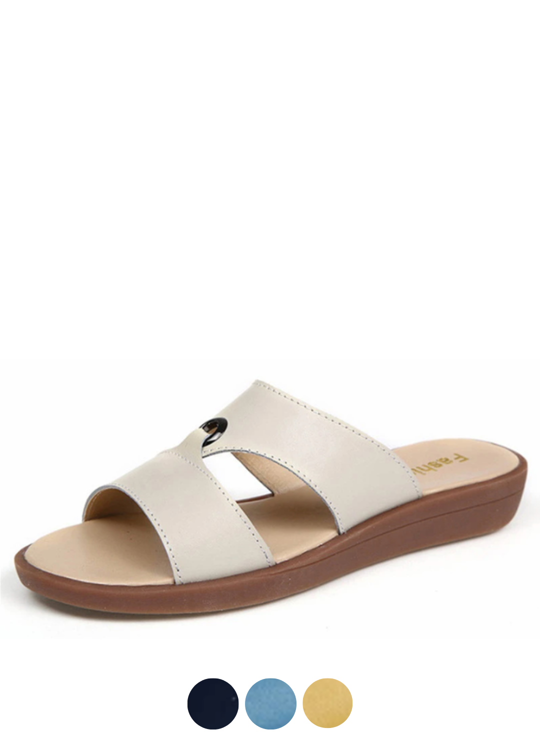 Take a look at the Yrina women's flip-flops by USS Shoes. This is a comfortable and stylish sandal with a versatile design. Crafted from soft genuine leather, they're ready for any occasion, from a day at the beach to a night out. Made with a durable and comfortable sole. These sandals come in beige, blue, white, and yellow so you can match a variety of outfits and look like a fun and fashionable woman.