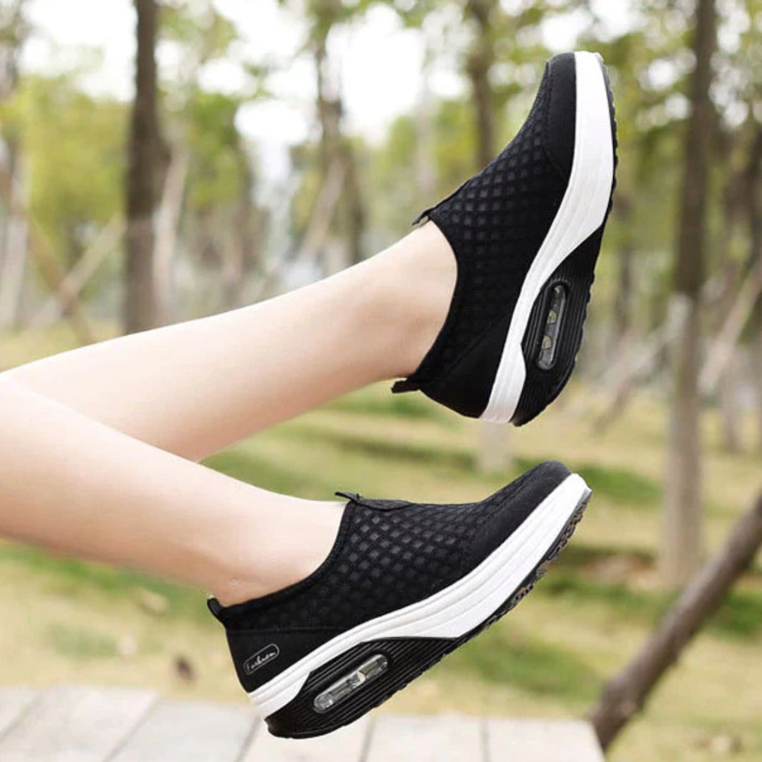 Stylish and comfortable, this Aziza women's sneaker is the perfect way to stay stylish from day to night. A simple yet stylish shoe perfect for any season. It is crafted with a slightly padded air-mesh upper that provides a lightweight and breathable fit. The casual platform design sits on a wedge to add height, while the slip-on style makes it easy to wear and slip on.