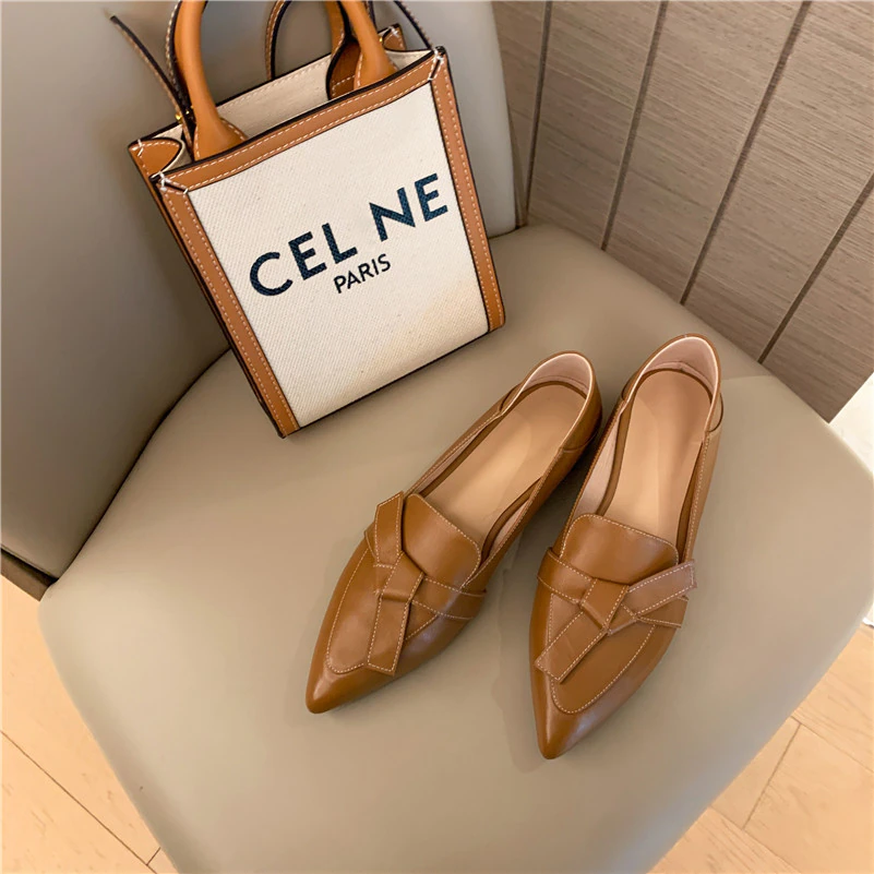 Crafted from genuine leather, the USS Shoes Amau Women's Loafer offers a refined pointed toe design enhanced with an elegant butterfly knot. This slip-on loafer features a durable TPR sole and a modest 1.5 cm heel, ensuring comfortable all-day wear during spring and autumn. With a true-to-size fit in medium width, it balances style and practicality while weighing only 6 oz. Made to order to reduce waste, these high-quality loafers combine expert craftsmanship with sustainable production, available for worldwide shipping.