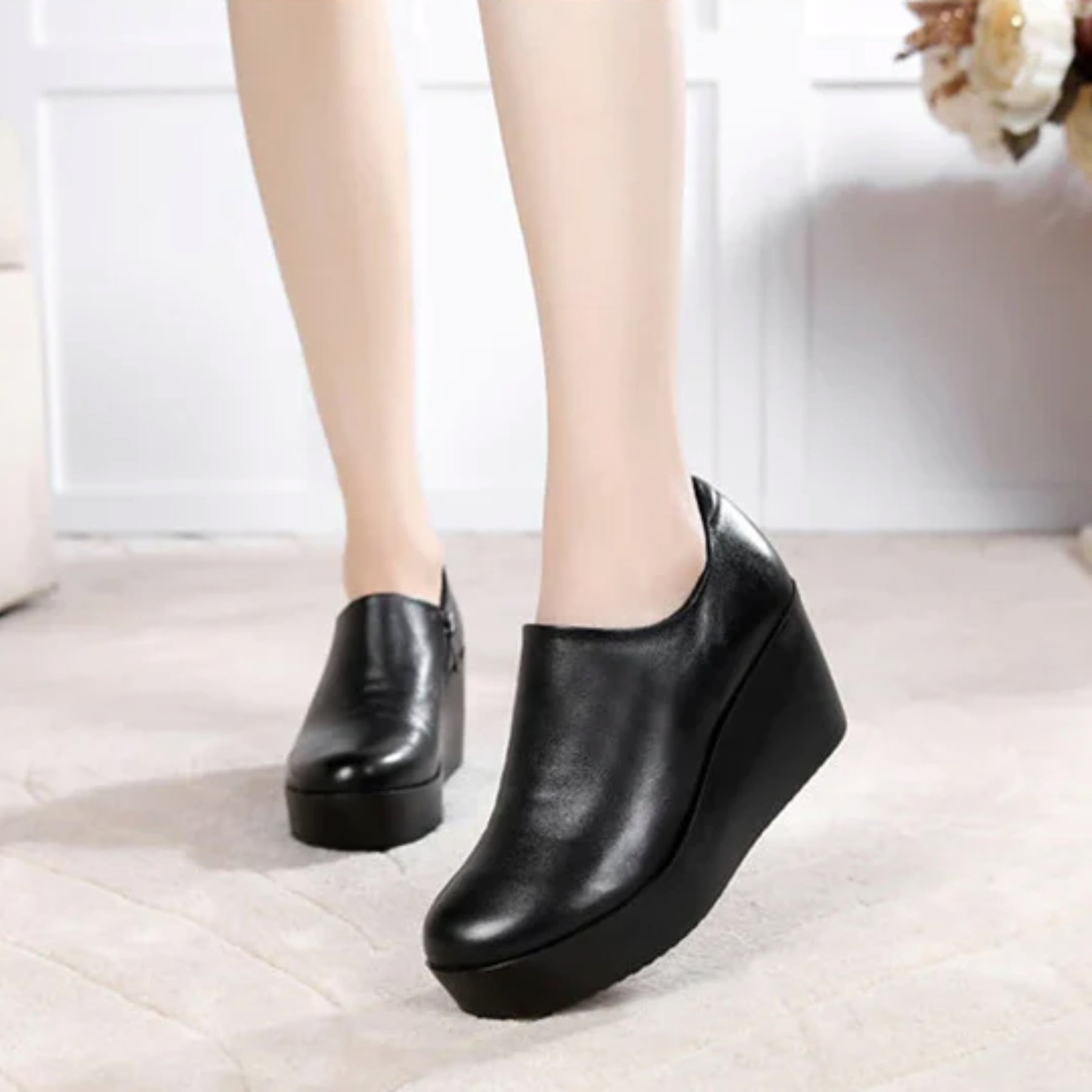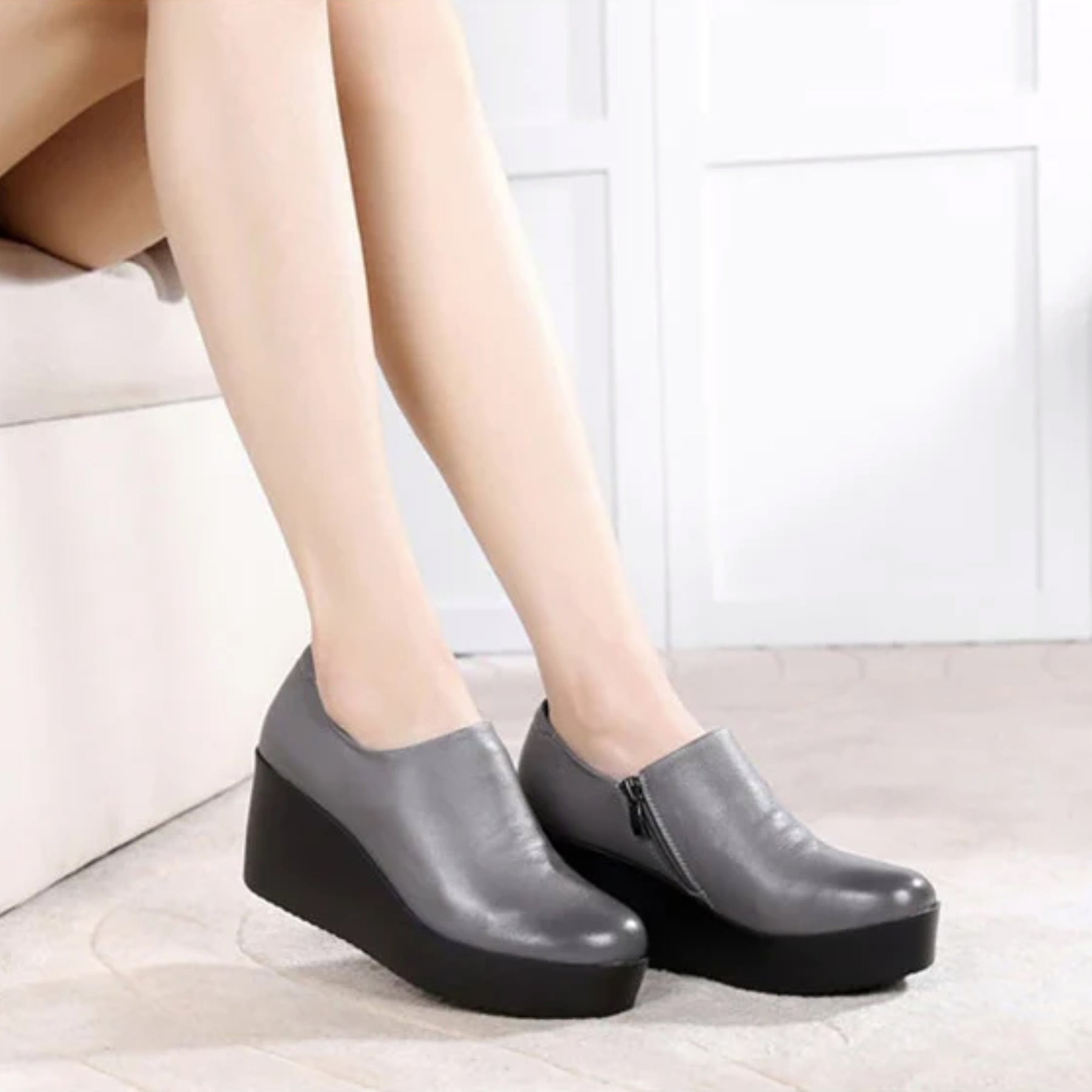 Alix Women's Spring Autumn Slip-On Platform Shoes combine refined craftsmanship with everyday versatility. Constructed from genuine leather with a polyurethane lining, these slip-ons feature a comfortable round toe and a convenient side-zipper closure. The 5-8cm high heel paired with a subtle 0-3cm platform creates a flattering silhouette while maintaining stability. Engineered with a durable rubber sole, they're designed to fit true to size and accommodate both medium and wide widths. Perfect for spring and autumn wear, these imported shoes deliver quality construction and timeless style. Available worldwide.