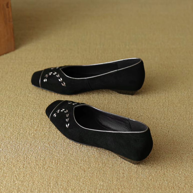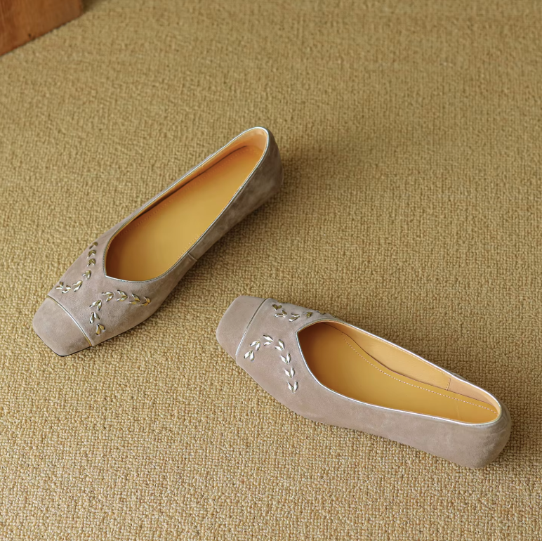 Crafted from genuine leather for durability and comfort, these Delfina flats by USS Shoes feature a slip-on design with a square toe for a modern look. The TPU insole ensures cushioned support, while the rubber outsole provides reliable traction. Designed for casual wear, these low-heeled flats combine style and practicality, made to order to reduce waste and promote sustainability.
